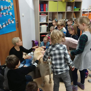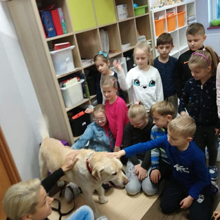 Dziś w klasie 1 i 3 mieliśmy niezwykłego gościa. Odwiedził nas Tabu - emerytowany pies ratownik. Służył w Górskim Ochotniczym Pogotowiu Ratunkowym, pomagając ludziom w wypadkach górskich. Ratował także tonących. Obecnie na zasłużony odpoczynek trafił do domu Filipa. Wszyscy byli zachwyceni jego wizytą!🐕🐕🐕