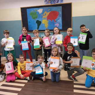 Miniony tydzień klasa 2a spędziła bardzo owocnie na opracowywaniu lektury "Karolcia". Uczniowie przez 3 dni tworzyli własne leporello - książeczkę w kształcie harmonijki, zawierającą kompendium informacji o lekturze. Pracy było bardzo dużo, ale efekty wspaniałe! Ponadto każdy z uczniów otrzymał własny magiczny niebieski koralik na różowej nitce, taki sam jaki miała główna bohaterka, i mógł wymyślić 3 życzenia do spełnienia. Do tego codziennie przez pracę z lekturą prowadziła nas prezentacja multimedialna z mnóstwem ukrytych zagadek i quizów, także matematycznych. To był wspaniałe spędzony czas. My dorośli możemy tylko z rozrzewnieniem dodać: "szkoda, że za naszych czasów tego nie było..."